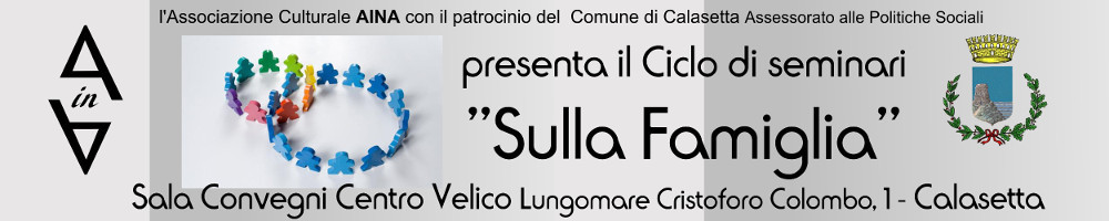 Evento culturale di otto appuntamenti in collaborazione con l'amministrazione del comune di Calasetta e l'associazione culturale TerraFirma, nei quali l'argomento Famiglia viene discusso, attraverso l'intervento di specialisti in campo educativo, da diverse prospettive: